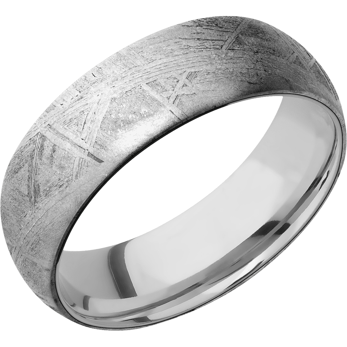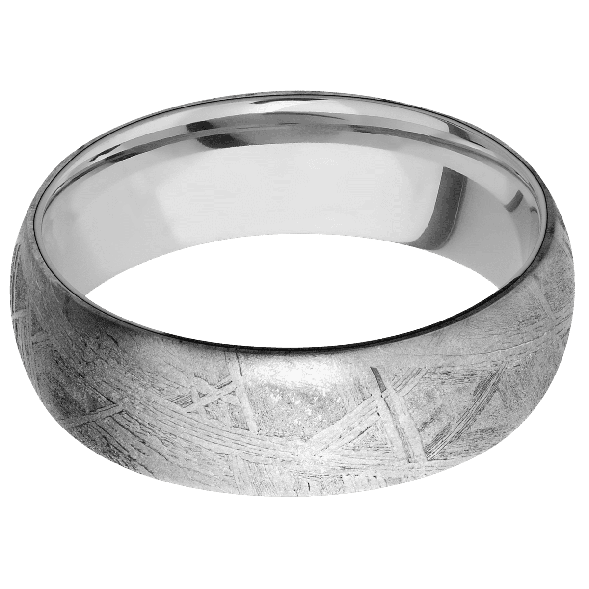 7 mm wide Domed Meteorite band featuring a 10K White Gold sleeve.