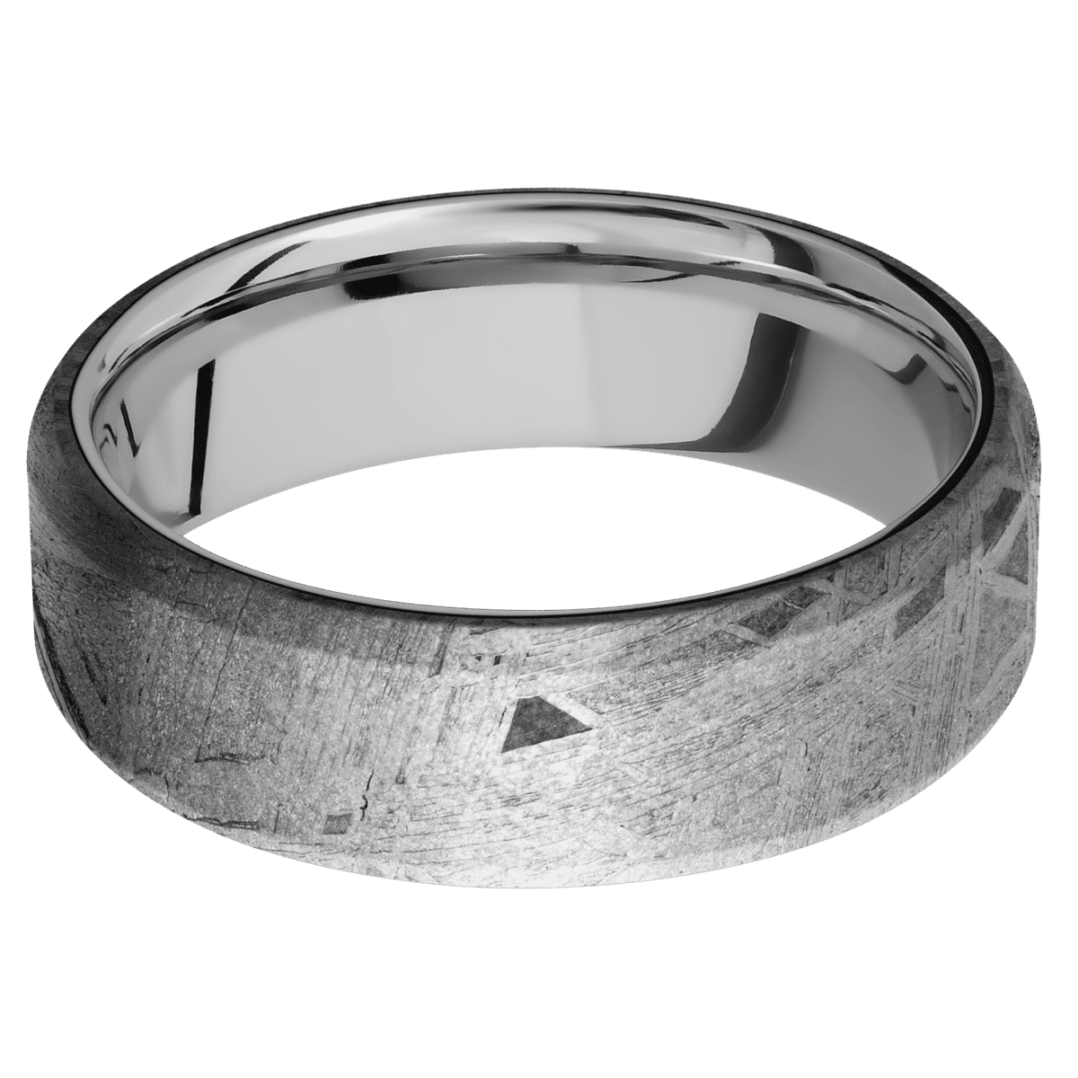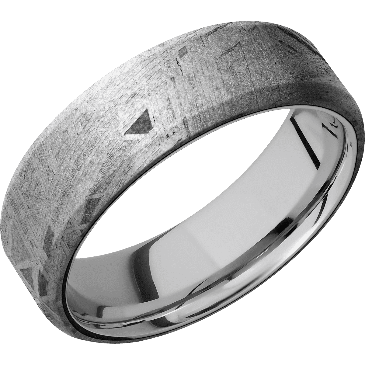 7 mm wide Beveled Meteorite band featuring a 10K White Gold sleeve.