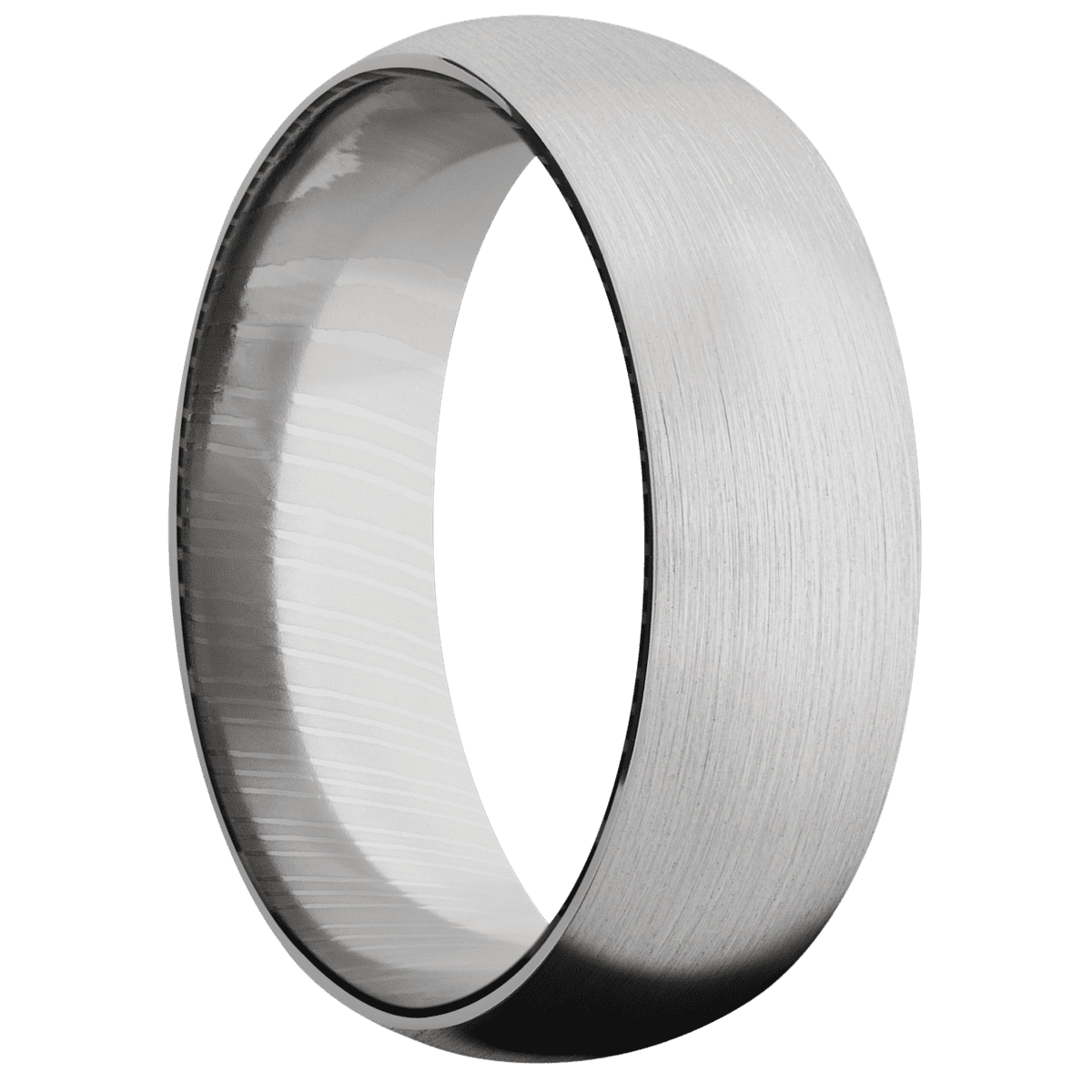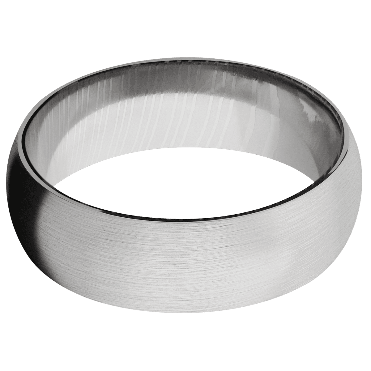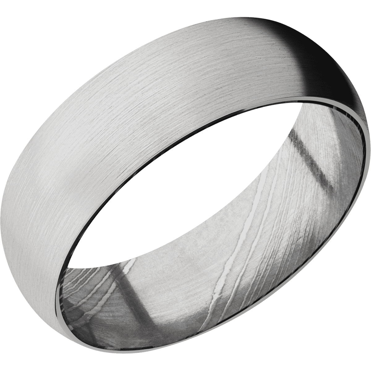 7 mm wide Domed Platinum band featuring a Damascus sleeve.