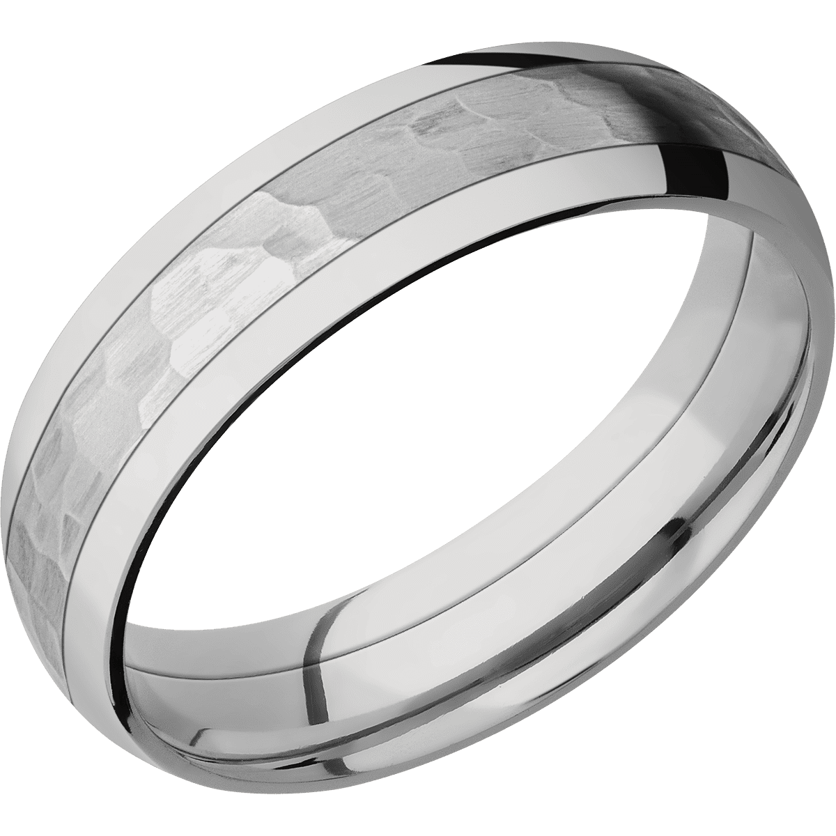 6 mm wide/Domed/Titanium band with one 3 mm Centered inlay of Titanium.