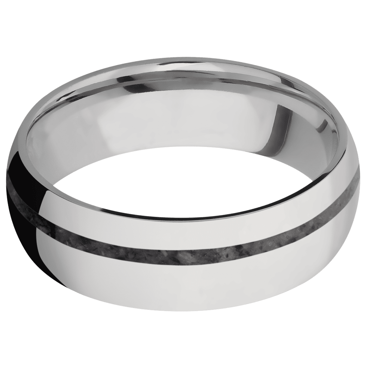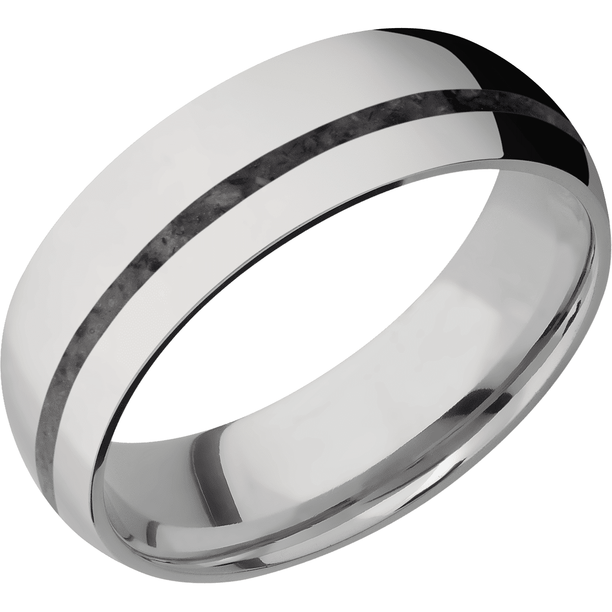 7 mm wide/Domed/Titanium band with one 1 mm Off Center inlay of Charoite.