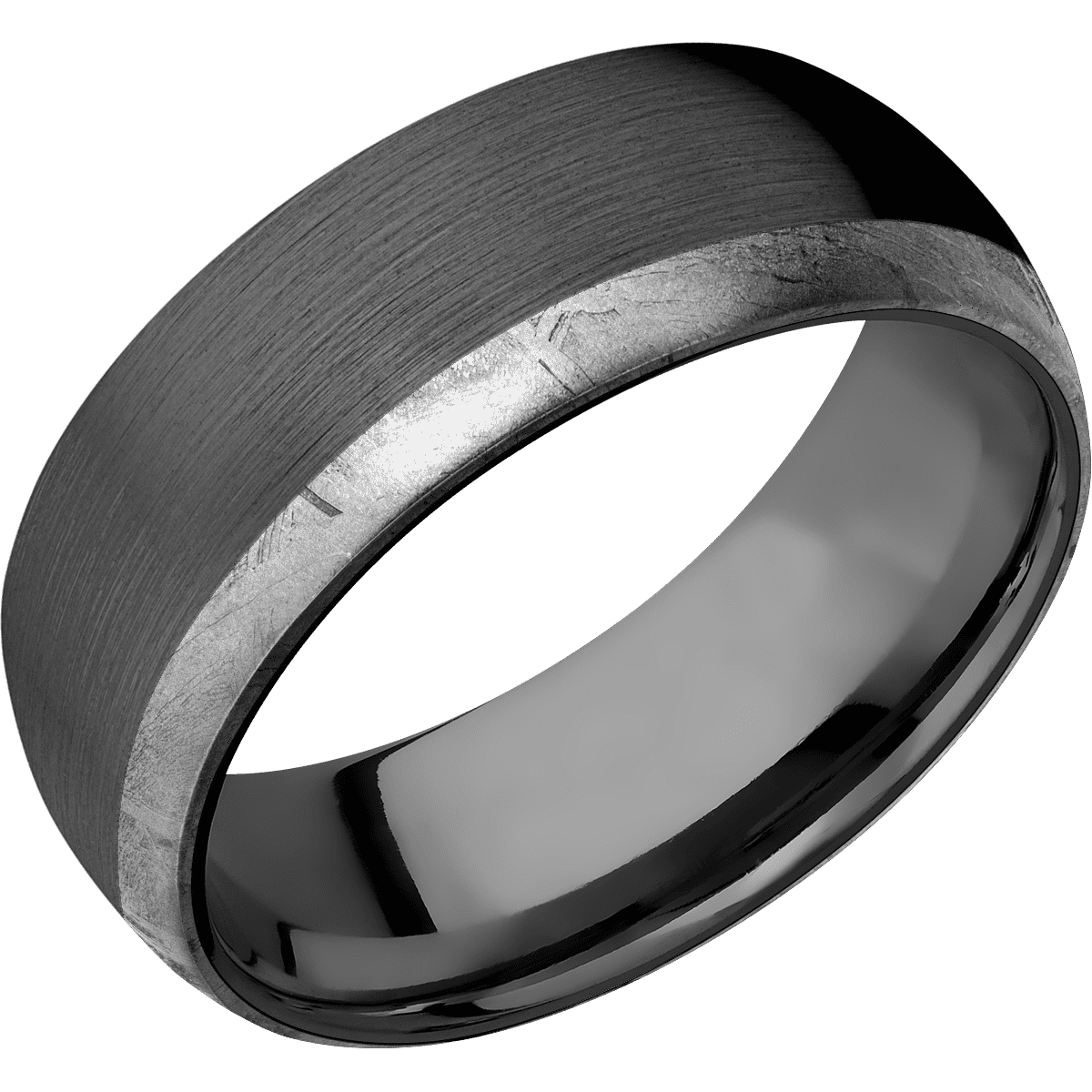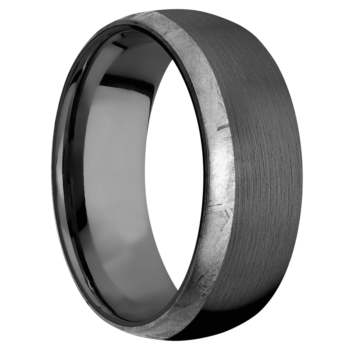 8 mm wide/Domed/Zirconium band with one 2 mm Off Center Edge inlay of Meteorite.