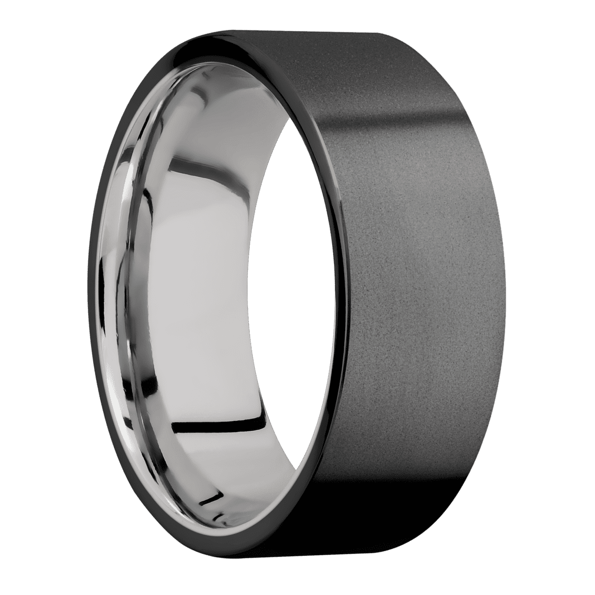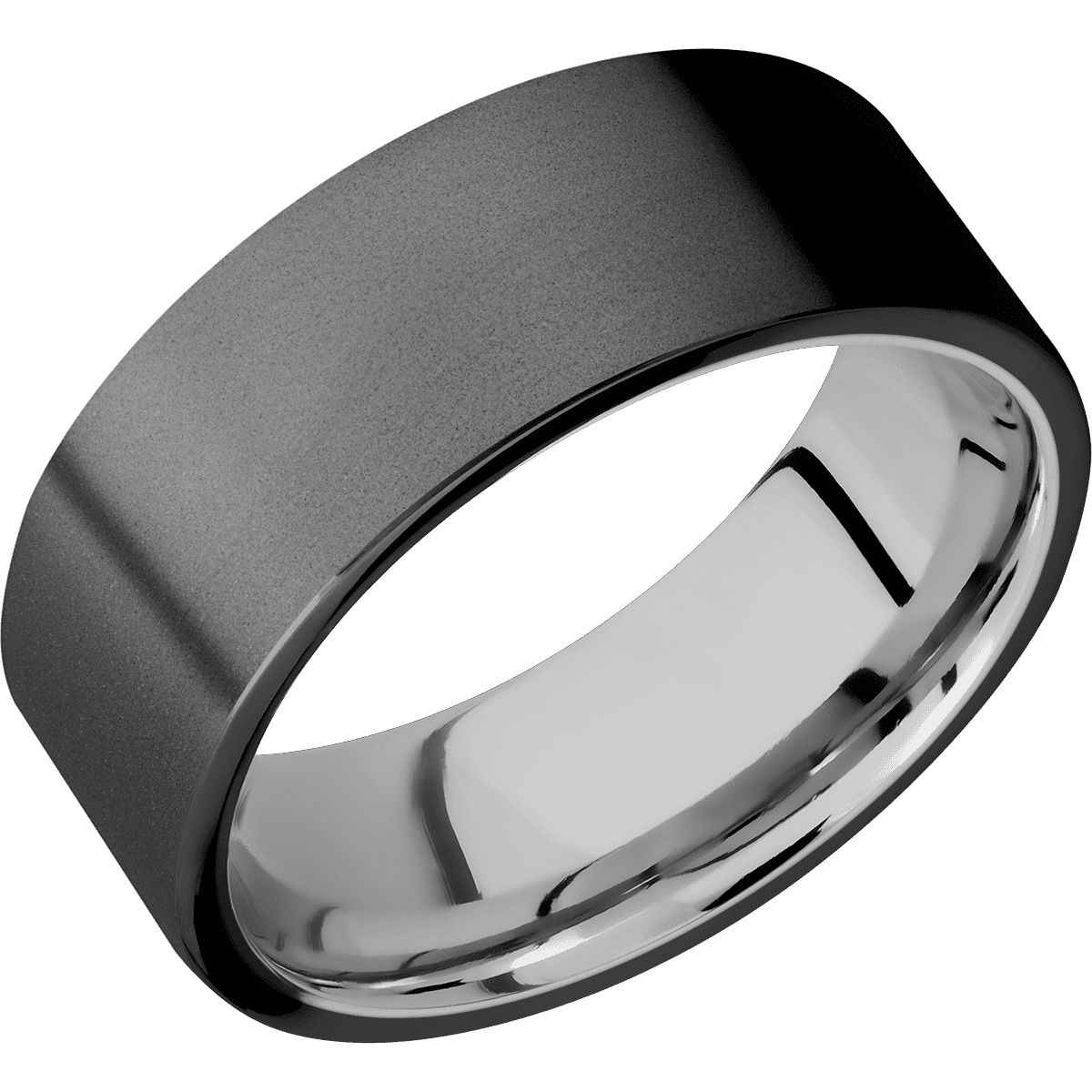 8 mm wide Flat Zirconium band featuring a Palladium Silver sleeve.