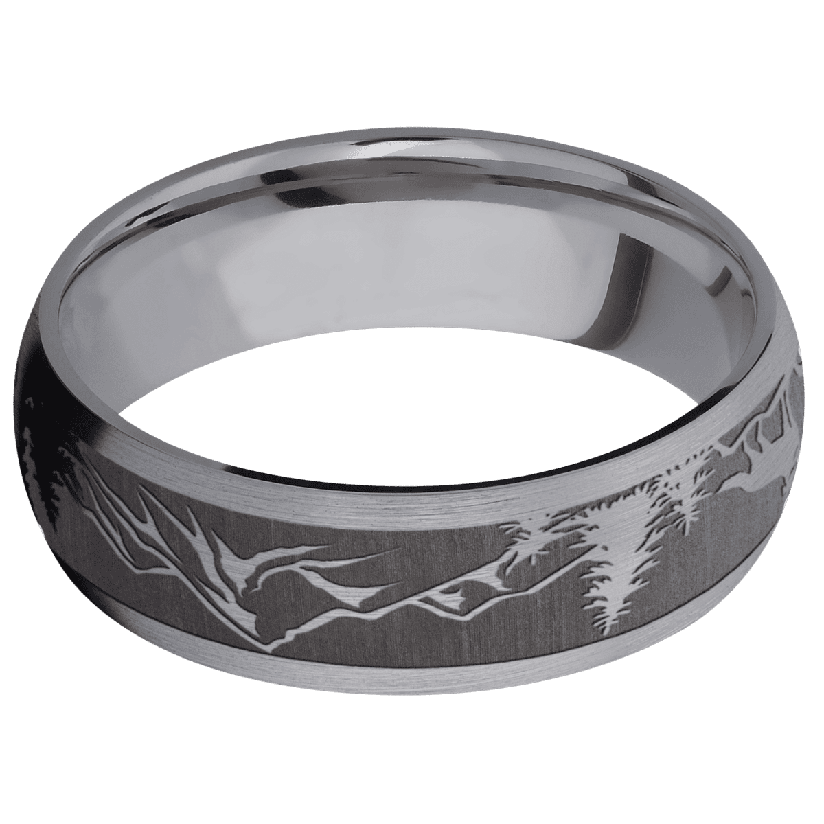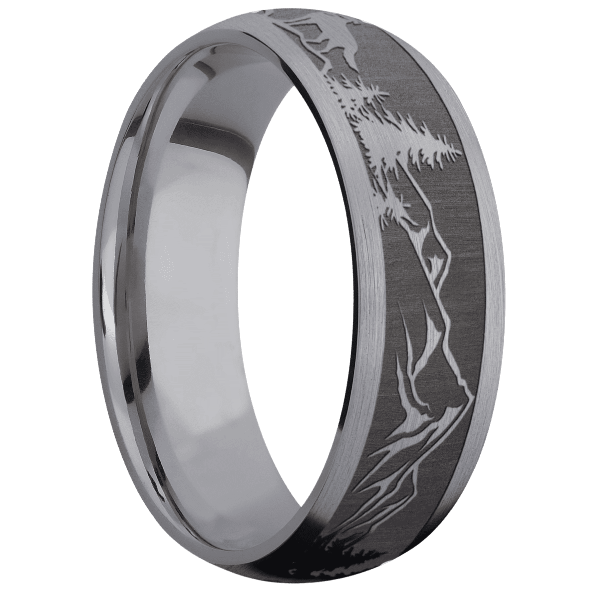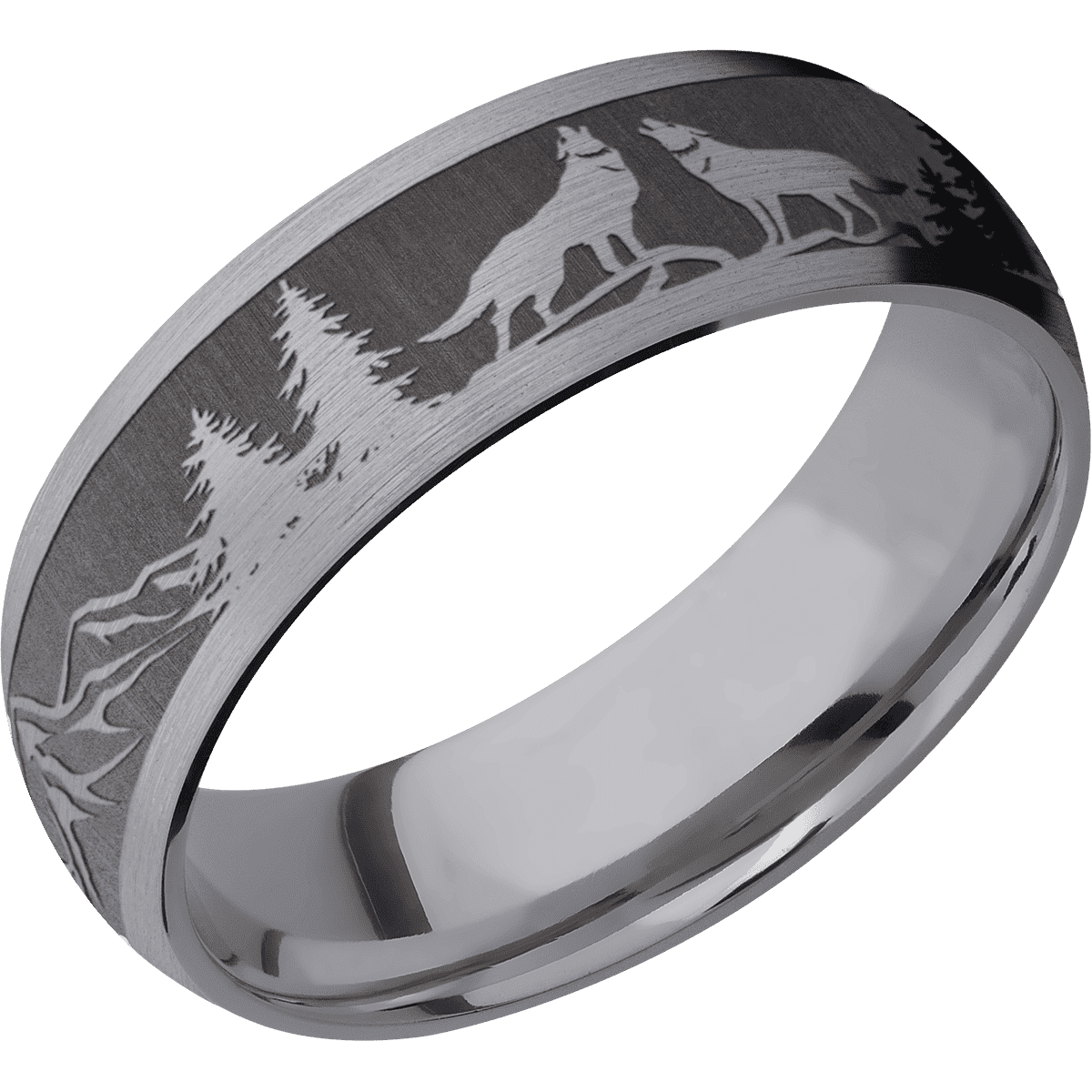 7 mm wide/Domed/Tantalum band with a laser carved Wolf Mountain pattern.