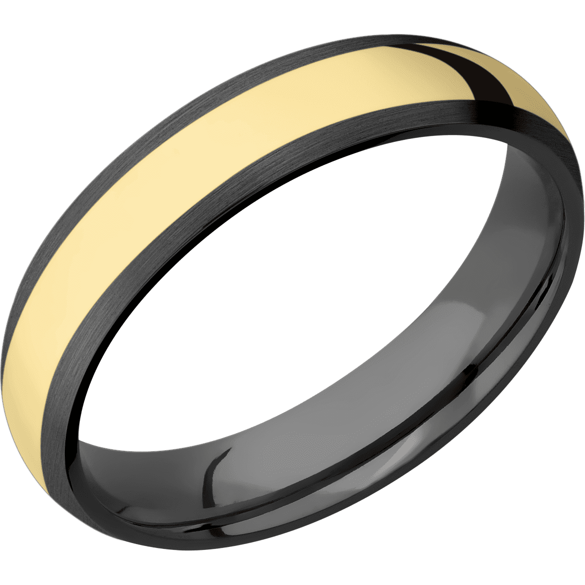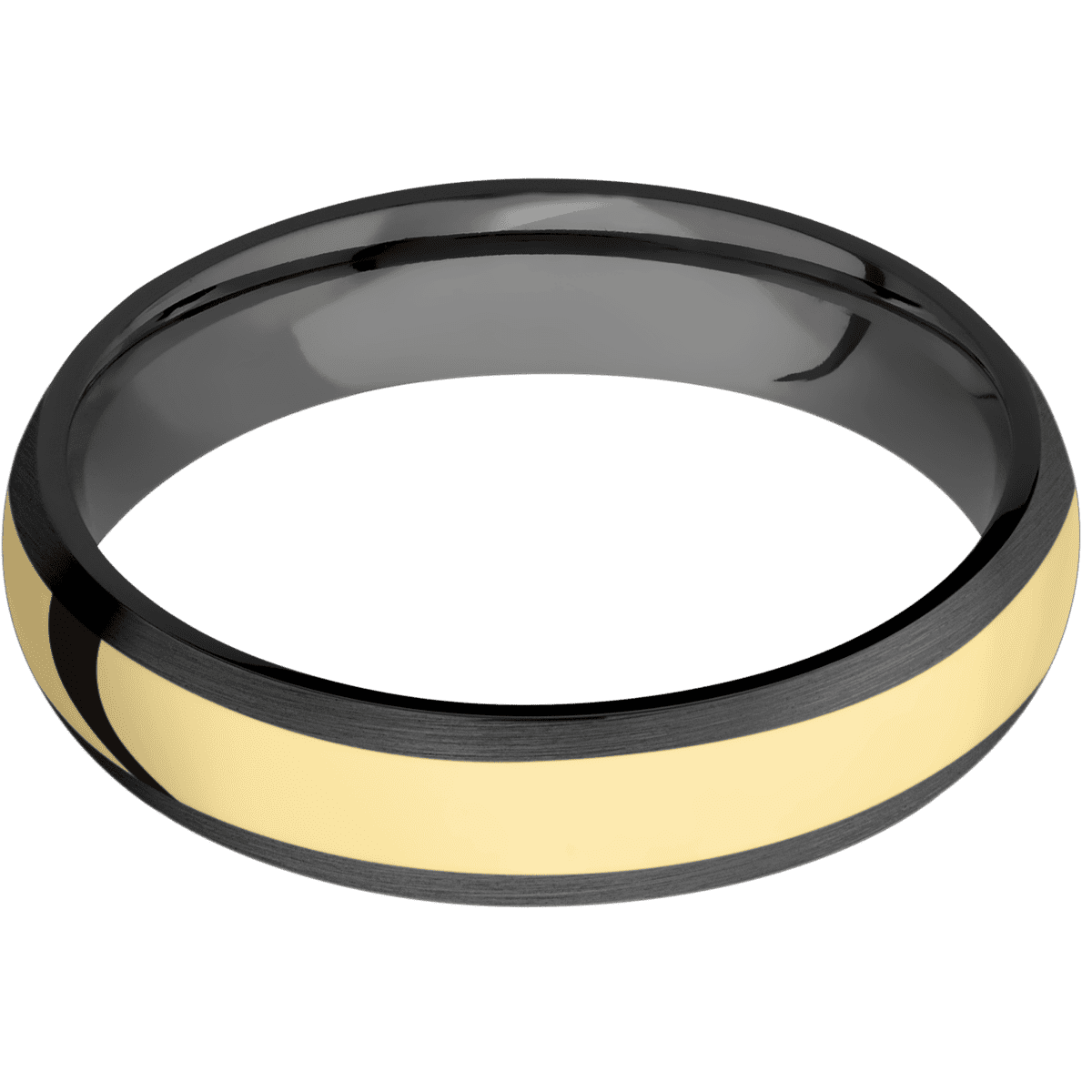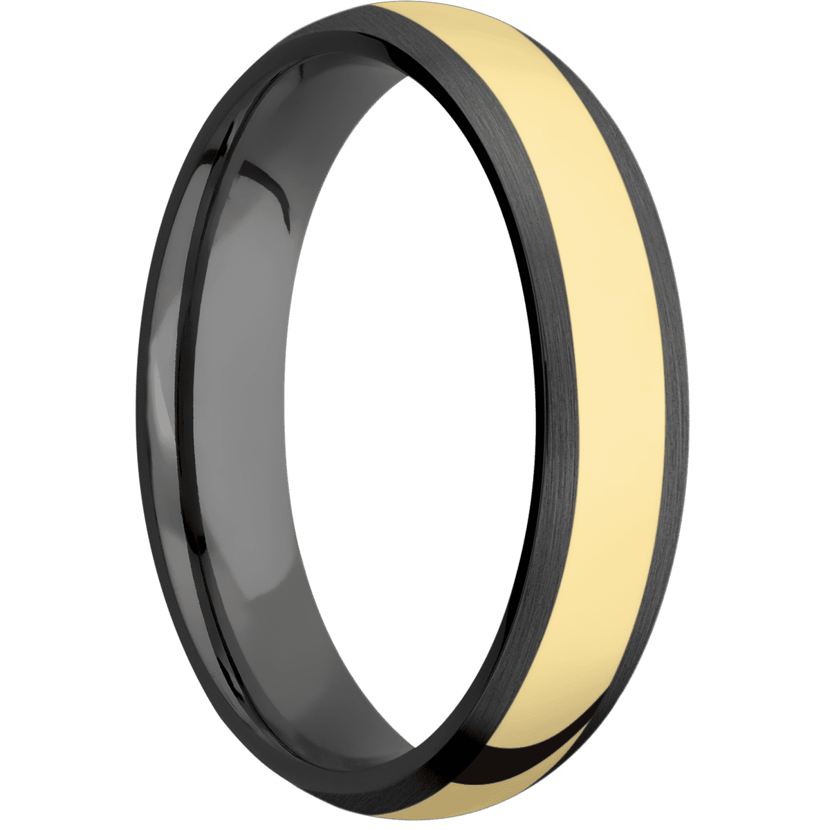 5 mm wide/Domed/Zirconium band with one 3 mm Centered inlay of 14K Yellow Gold.