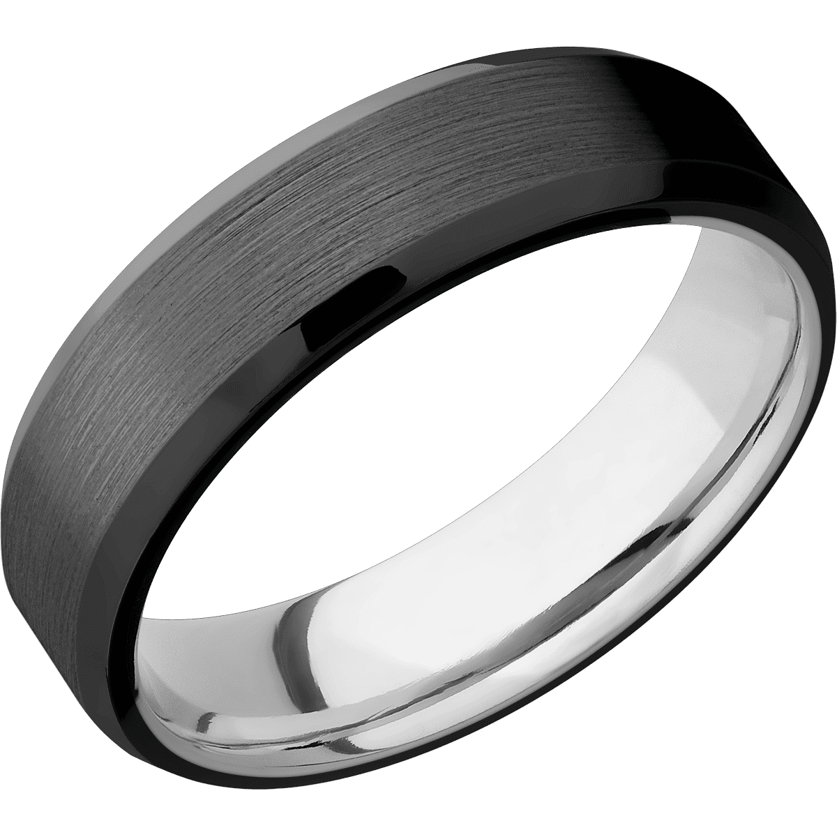 6 mm wide Beveled Zirconium band featuring a 10K White Gold sleeve.